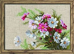 Вышивка крестом у «Риолис» давно перестала быть просто крестиками на белой канве: дизайнеры работают с льняным полотном («Чай», «Кофе», «Бархатный вечер»), а также канвой черного («Маки на черной канве», «Подсолнухи на черной канве», «Ирис») и других цветов. Не редкость — вышивка бисером и лентами, а особую гордость бренда представляют наборы в смешанной технике: такие, как «В лучах заката» с вкраплениями бисера или «Бабочки» с металлизированной нитью.