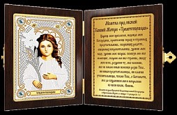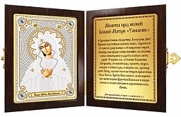 К каждой иконе прилагается молитва — тому святому, который на ней изображен. А саму икону вам предстоит вышить: сверкающим японским бисером, бусинами и пришивными крупными камнями на ткани с нанесенным рисунком, где лица и руки традиционно остаются открытыми.