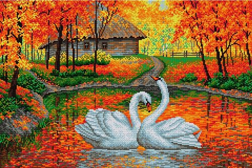 Алмазная мозаика Вышиваем Бисером "Лебеди на пруду" V-10