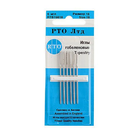 6 гобеленовых игл. Размер: 18. Длина: 48,5 мм. Диаметр: 1,27 мм.