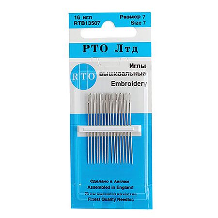 16 игл для вышивания. Размер: 7. Длина: 38,5 мм. Диаметр: 0,69 мм.