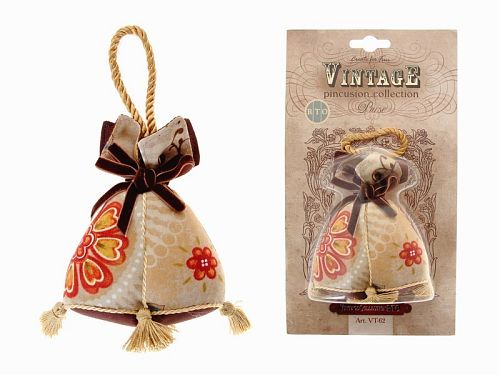 Игольница изготовлена из хлопковой ткани и дополнена декоративными элементами. Цвет и рисунок ткани могут быть немного изменены производителем с сохранением винтажного стиля изделия.