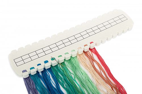 Мулине закрепляют в прорезях органайзера. Мягкая и пористая поверхность органайзера позволяет надежно фиксировать иглу с нитью.