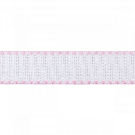 Белая канва-лента (ширина 35 мм, длина 1.5 метра) с розовой каймой.