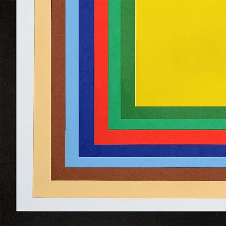 10 листов фоамирана. Цвета: черный - 1 шт, белый - 1 шт, темно-коричневый - 1 шт, слоновая кость - 1 шт, красный - 1 шт, зеленый - 1 шт, темно-зеленый - 1 шт, синий - 1 шт, темно-синий - 1 шт, лимонный - 1 шт.