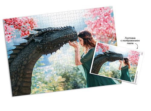 Пазл из цельнолитого картона (1000 элементов), упакованный в картонную коробку. Внутри коробки элементы мозаики хранятся в запаянном пакете, что предотвращает их рассыпание в процессе транспортировки.