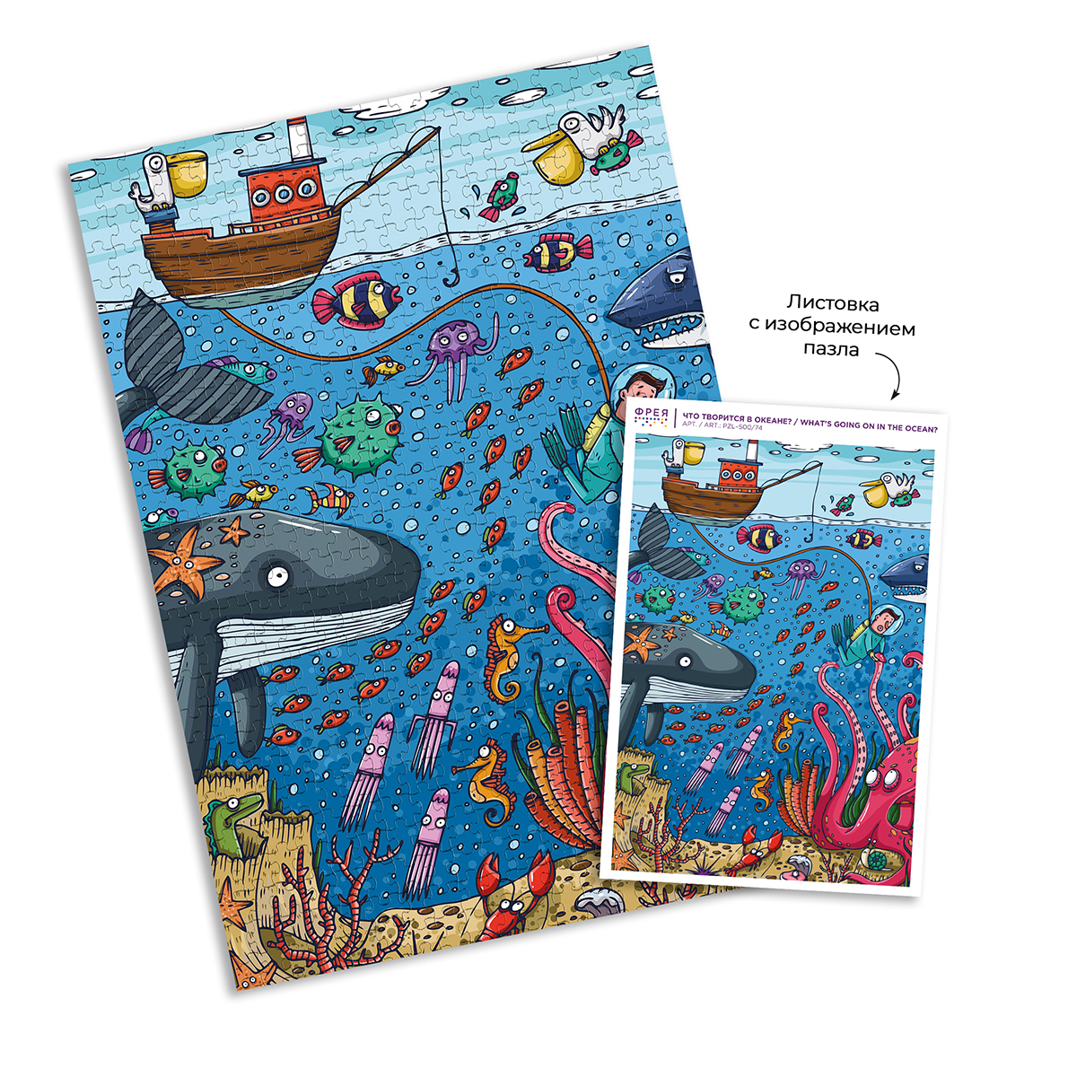 Пазл из цельнолитого картона (2000 элементов), упакованный в картонную коробку. Внутри коробки элементы мозаики хранятся в запаянном пакете, что предотвращает их рассыпание в процессе транспортировки.