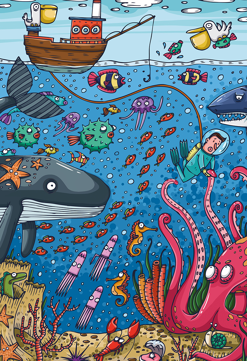 Водоемы, Люди, Море, Морское царство, Мужчины, Птицы, Рыбы