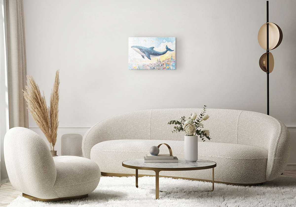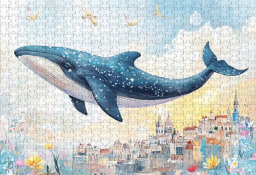 Пазл из цельнолитого картона (2000 элементов), упакованный в картонную коробку. Внутри коробки элементы мозаики хранятся в запаянном пакете, что предотвращает их рассыпание в процессе транспортировки.
