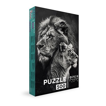 Пазл из цельнолитого картона (500 элементов), упакованный в картонную коробку. Внутри коробки элементы мозаики хранятся в запаянном пакете, что предотвращает их рассыпание в процессе транспортировки.