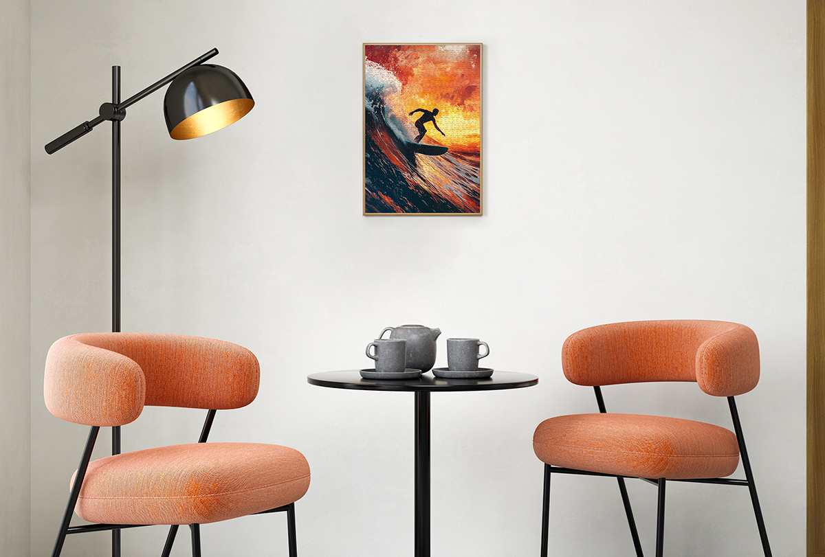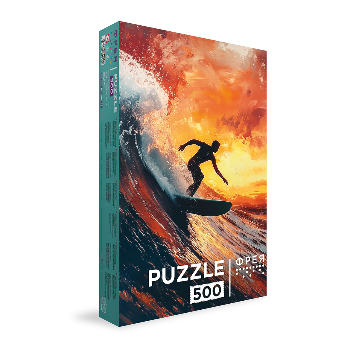 Пазл из цельнолитого картона (2000 элементов), упакованный в картонную коробку. Внутри коробки элементы мозаики хранятся в запаянном пакете, что предотвращает их рассыпание в процессе транспортировки.