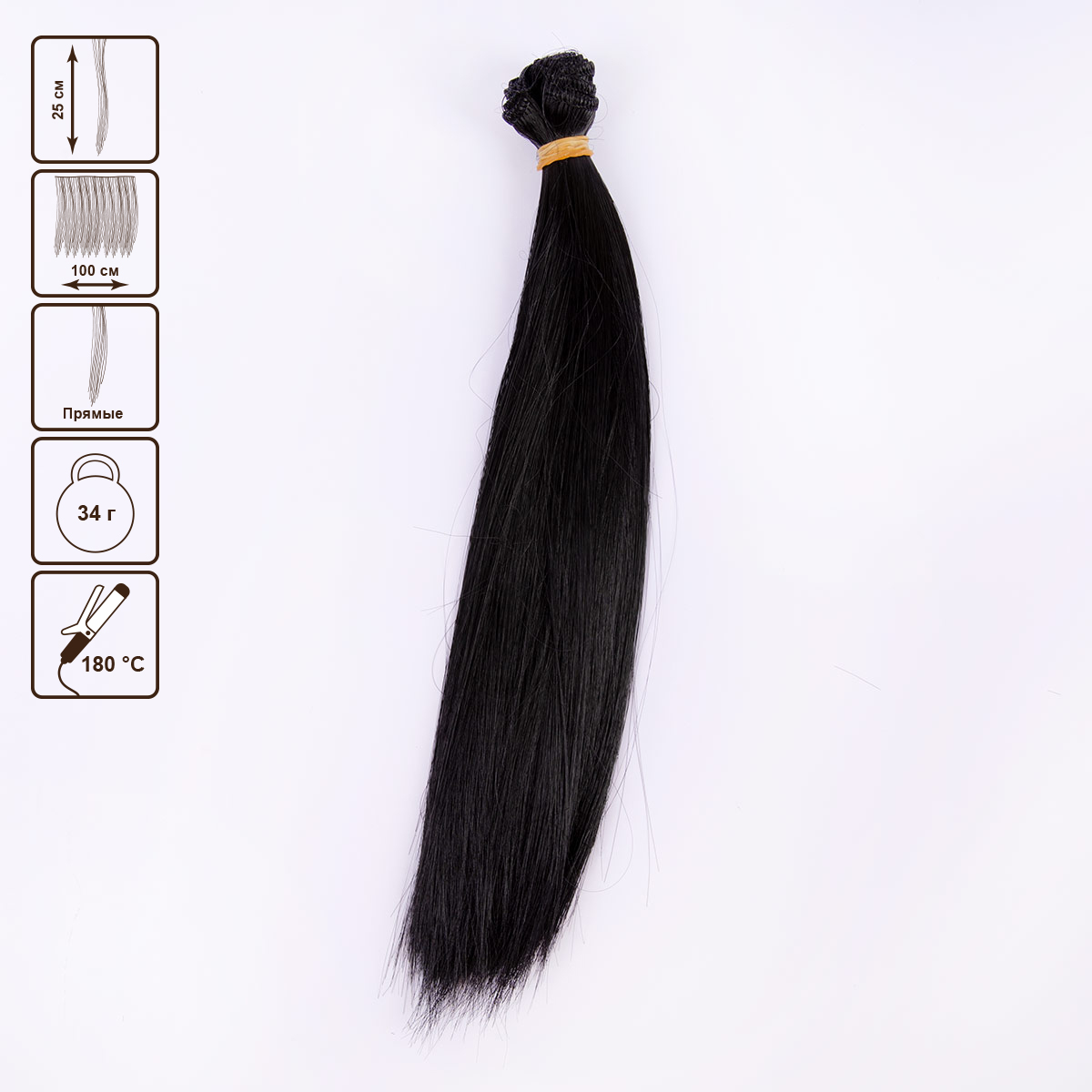 Длина трессы - 100 см. Синтетические окрашенные волосы из качественного искусственного волокна. Трессы можно приклеивать или пришивать к голове куклы. Волосы закреплены с помощью нитки в цвет пряди, сшитой зигзагом. Сделаны из жаропрочного волокна - их можно завивать и выпрямлять.