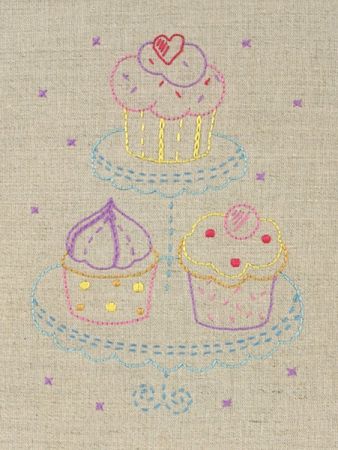 Ткань с нанесенным рисунком, нитки, иголка, схема, инструкция на русском языке.