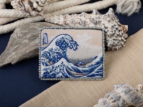 Хлопковая ткань с напечатанным рисунком, мулине, иглы, картонная основа для броши, чешский бисер - 1 цвет, искусственная кожа, крепление для броши, подробная инструкция по вышиванию с иллюстрациями.