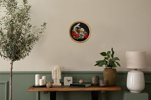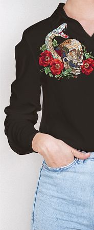 Каждый шаг, описанный в инструкции, дублируется схемой, что упрощает процесс выполнения работы. Также в набор входит шаблон, с помощью которого можно примерить как будет выглядеть вышивка на выбранном материале/ткани/одежде. Для этого необходимо вырезать шаблон по контуру и приложить к месту, на котором предполагается вышивать сюжет. Таким образом вы заранее поймете, как будет выглядеть результат вашей работы.