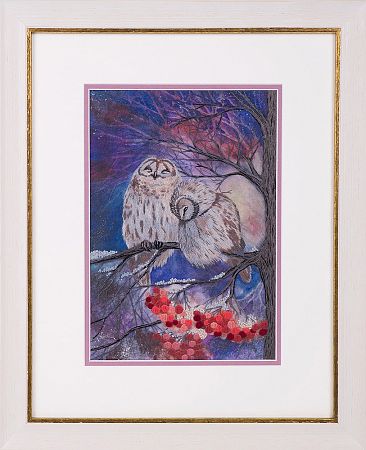 Данная работа сочетает в себе пару сов и рябину в технике вышивки гладью. Она станет прекрасным элементом декора и будет демонстрировать гостям ваше вышивальное мастерство.