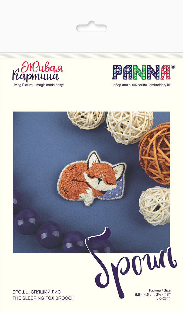 Фетр с нанесенным контуром, фетр для оформления оборотной стороны броши, картон, мулине, игла, крепление для броши, подробная инструкция с цветными иллюстрациями.