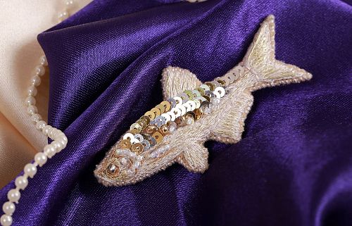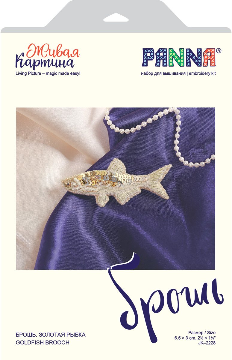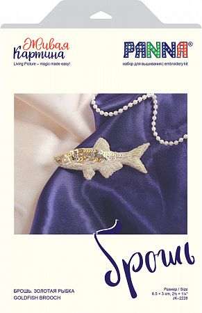 Фетр с напечатанным контуром, фетр для обратной стороны броши, мулине - 3 цвета, бисер - 3 цвета, пайетки - 2 цвета, металлизированные нити, иглы, заготовка для броши из картона, замочек для броши, подробная пошаговая инструкция с цветными иллюстрациями.