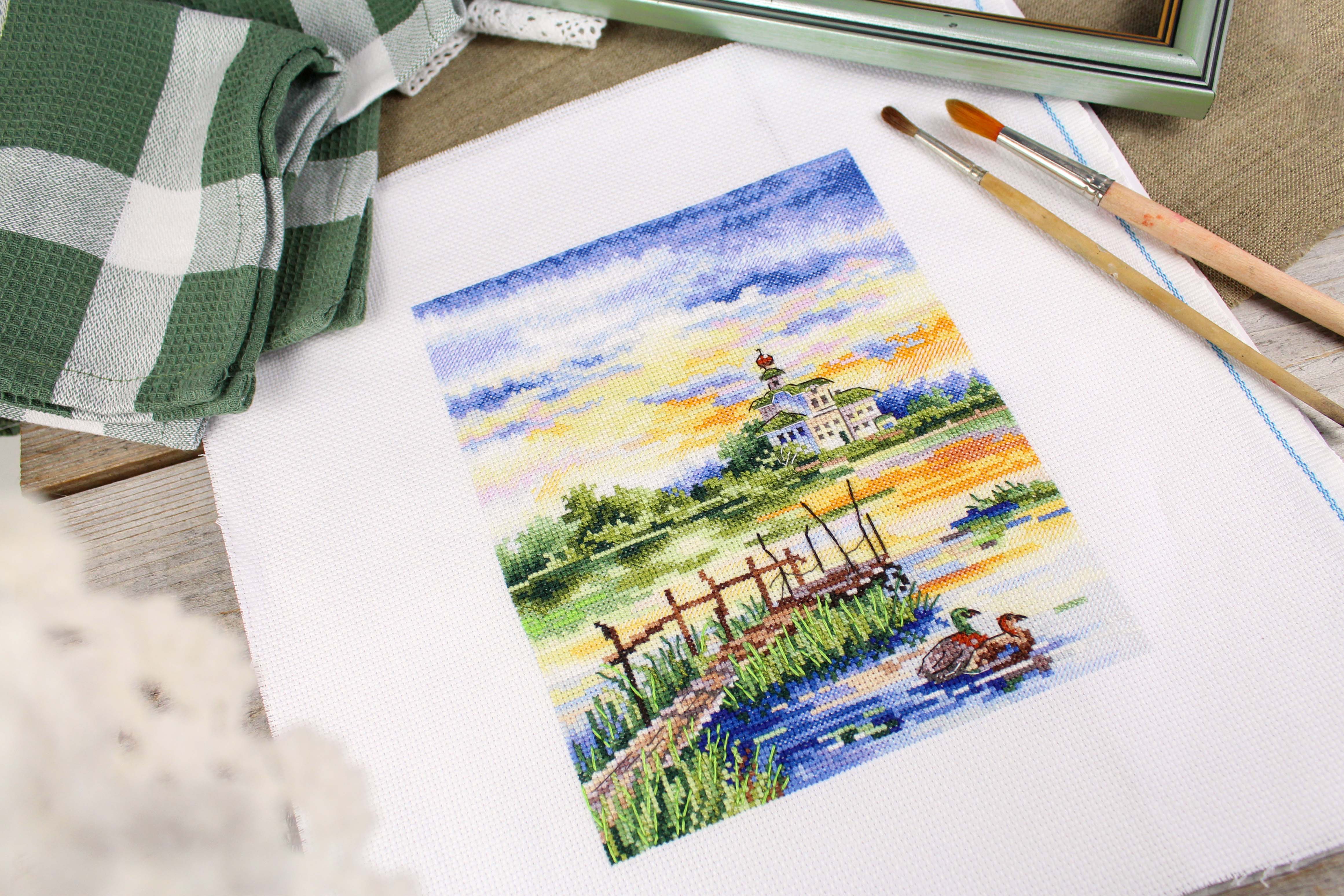 Канва, мулине, иголка, бумажная схема, электронная схема Makosh, вышивальная линейка, нитковдеватель, инструкция.