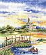 Водоемы, Деревня, Лето, Мосты, Пейзаж, Птицы, Церкви