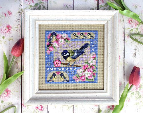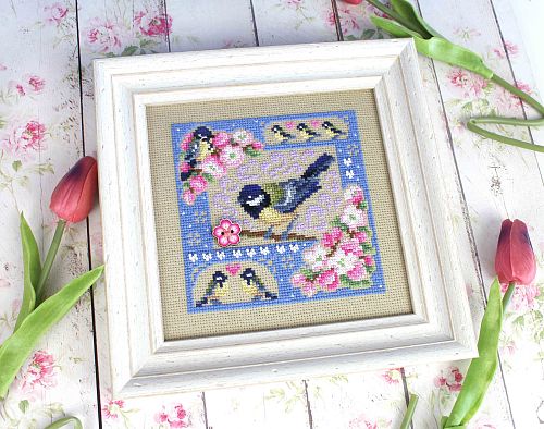 Весна, Орнаменты и узоры, Птицы, Синички, Цветы