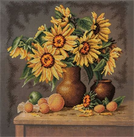 Букеты, Натюрморт, Персики, Подсолнухи, Фрукты, Цветы, Яблоки