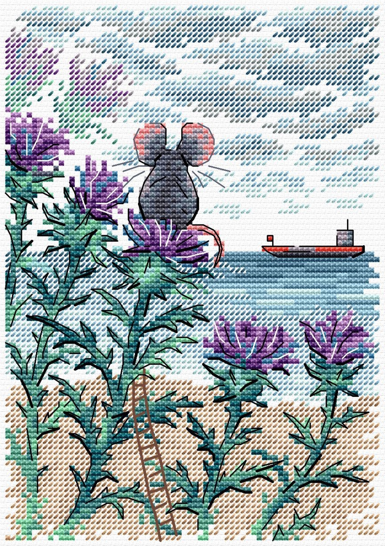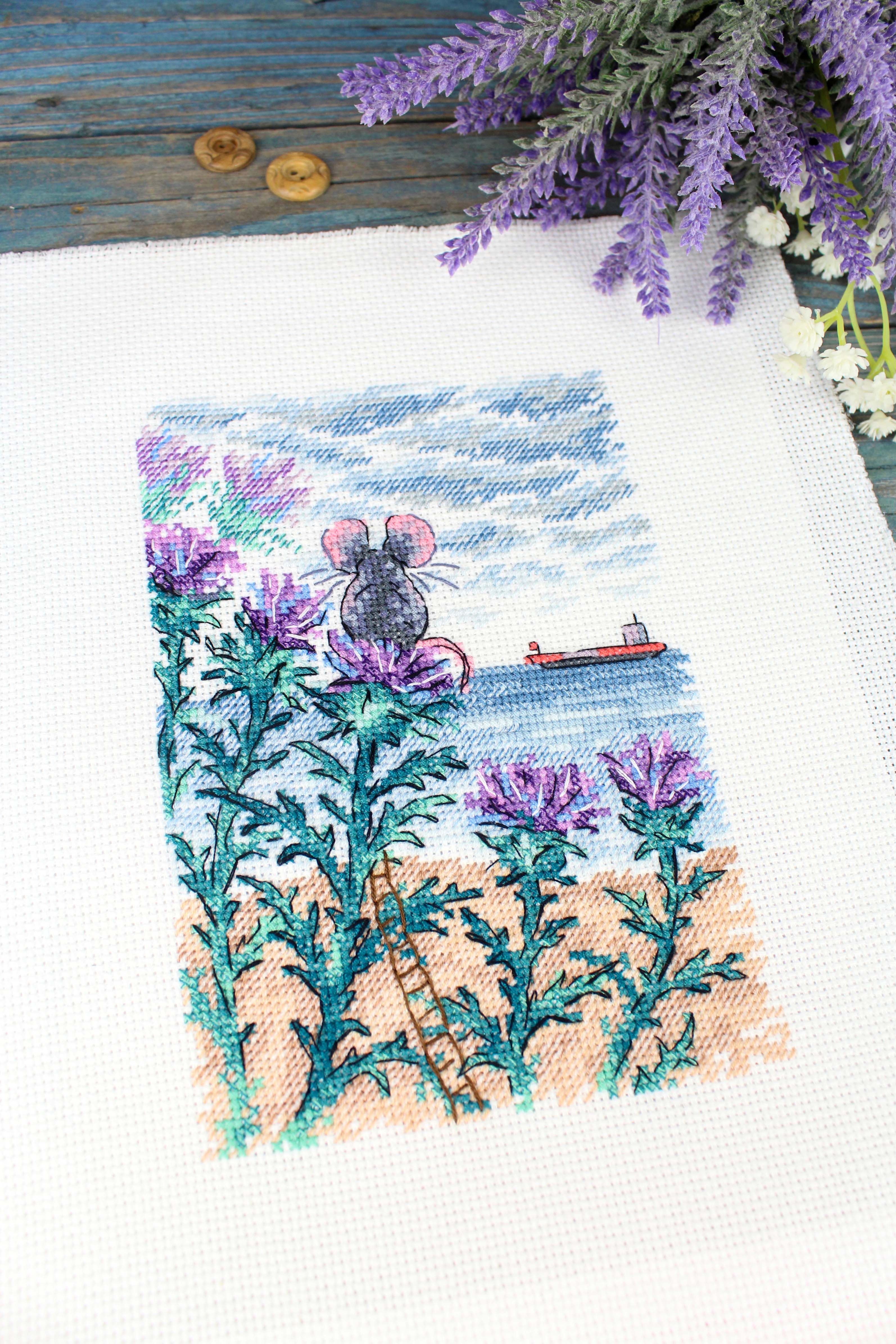 Водоемы, Животные, Корабли, Море, Мышки, Пейзаж, Цветы, Чертополох
