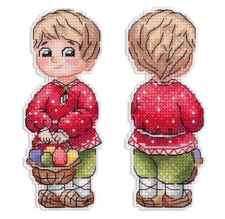 Набор для вышивания Жар-птица "Мальчик с пасхальной корзинкой" Р-1171