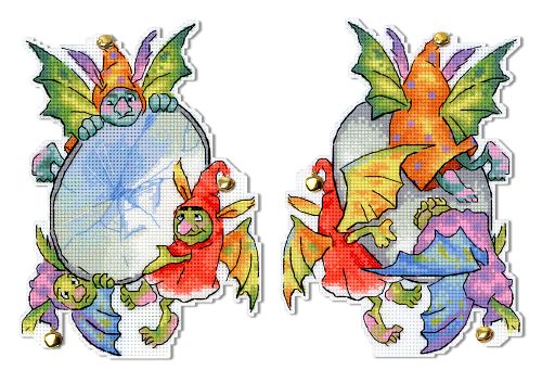 Пластиковая канва, нитки, иголка, бубенчики (7 шт.), схема, инструкция на русском языке.