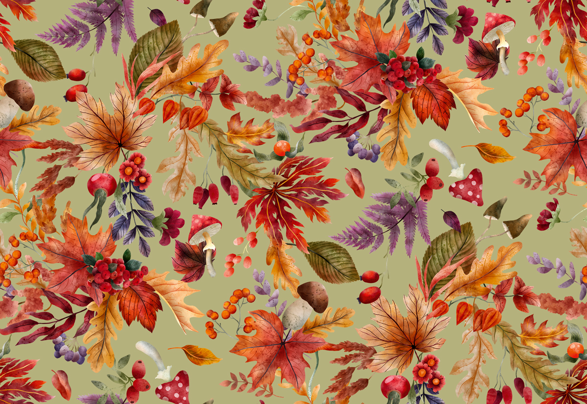 Грибы, Лес, Листья (растения), Осень, Рябина, Физалис, Ягоды