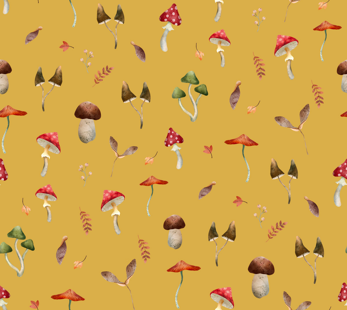 Грибы, Лес, Листья (растения), Осень