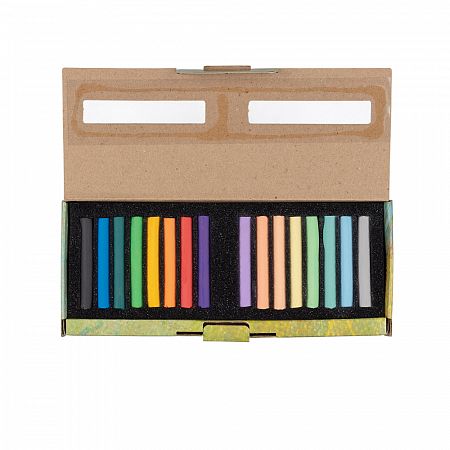 В составе художественной пастели нет масла, воска, глины – только светостойкие пигменты, гуммиарабик и некоторые специальные добавки. Тонкий круглый мелок позволяет создавать четкие штрихи и выполнять крупные заливки. Пастель универсальна в применении, хорошо ложится на различные поверхности, может размываться водой.
