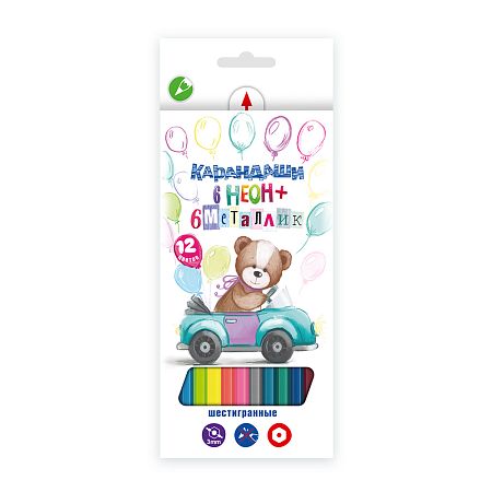 Цветные карандаши Мишка "Неоновые и металлик. Набор 12 цветов" MNCP-9012