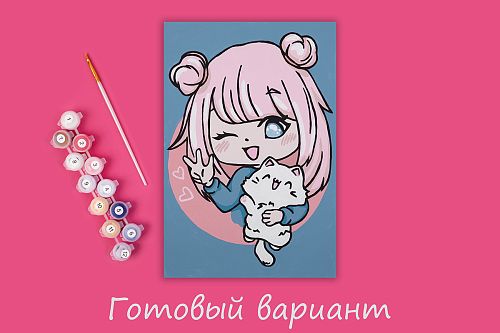 Картонная основа с напечатанным изображением, акриловые краски в пронумерованных баночках, две кисти разного размера, инструкция с контрольным листом и эталоном готовой картины.