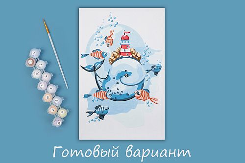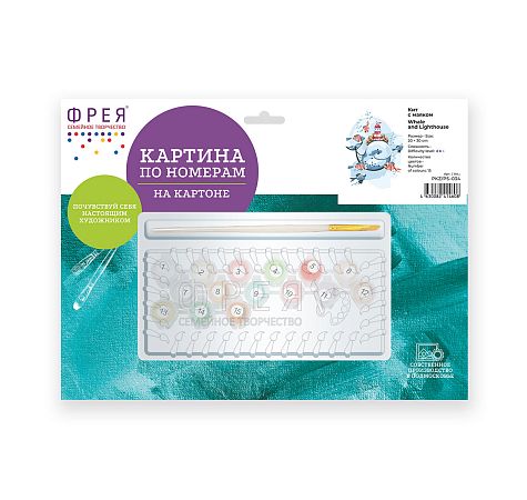 Картонная основа с напечатанным изображением, акриловые краски в пронумерованных баночках, две кисти разного размера, инструкция с контрольным листом и эталоном готовой картины.