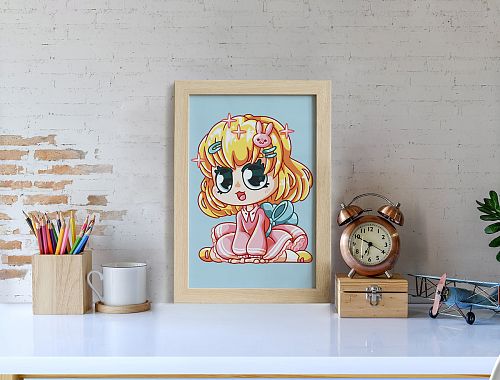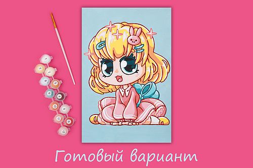 Картонная основа с напечатанным изображением, акриловые краски в пронумерованных баночках, две кисти разного размера, инструкция с контрольным листом и эталоном готовой картины.