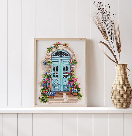 Картонная основа с напечатанным изображением, акриловые краски в пронумерованных баночках, две кисти разного размера, инструкция с контрольным листом и эталоном готовой картины.