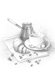 Перерыв на кофе. Раскрашивание чернографитными карандашами