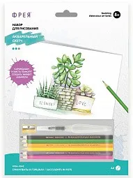 Суккуленты в горшках. Раскрашивание акварельными карандашами