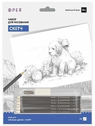 Крошка щенок. Раскрашивание чернографитными карандашами