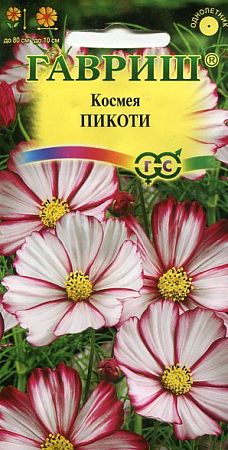 Роскошное однолетнее растение из семейства Астровые, высотой до 80 см. Пышный куст с ажурными листьями покрывают белые цветки, диаметром 10 см, с эффектной карминно-красной каймой по краю лепестков.