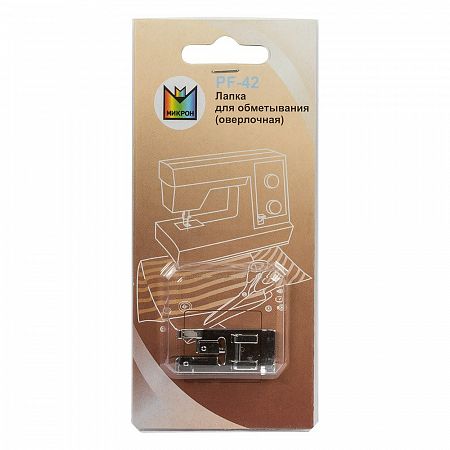 Лапка предназначена для выполнения краеобметочных швов на швейной машине. Данная лапка подходит к следующим бытовым швейным машинам: "Micron classic" 1019 Micron, Bernina, Bernette, Brother, Janome, Astralux, Aurora, Juki, Yamata, Toyota, Elna, Husqvarna, Comfort, Veritas, Jaguar, Siruba. Если Вы не обнаружили своей модели швейной машины, лапку можно легко подобрать по размеру прорези адаптера - 6 мм.