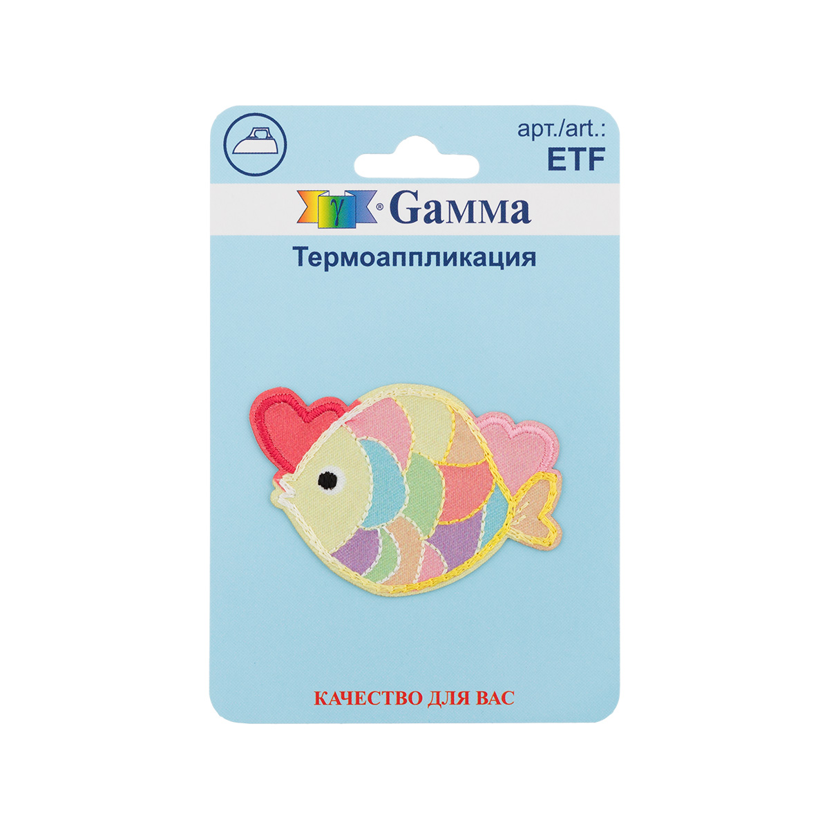 Аппликация с нанесенным на изнаночную сторону слоем клея, который под действием температуры расплавляется и крепится к ткани.