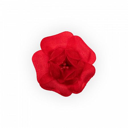 Тканевый цветок на булавке с множеством лепестков и бусинками в сердцевине. Цветок подойдет для различных видов декора: отделочный элемент для платья, блузки, театрального костюма, ободка для волос, резинок, заколок. Также может быть использован в украшении букетов, венков, свадебных композиций. Примерный диаметр 8 см.
