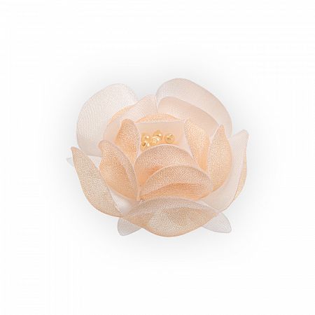 Тканевый цветок на булавке с множеством лепестков и бусинками в сердцевине. Цветок подойдет для различных видов декора: отделочный элемент для платья, блузки, театрального костюма, ободка для волос, резинок, заколок. Также может быть использован в украшении букетов, венков, свадебных композиций. Примерный диаметр 6 см.