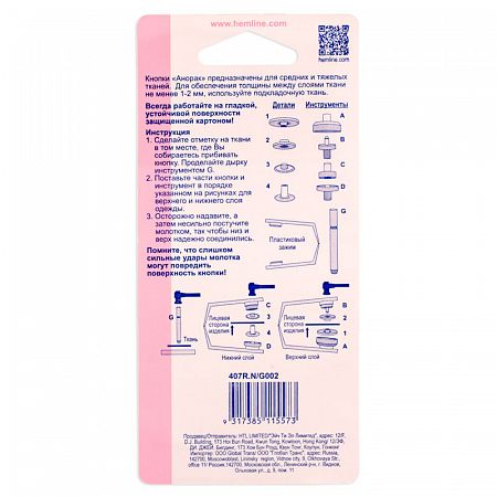 Фурнитура Hemline "Кнопки Анорак" 407R.N