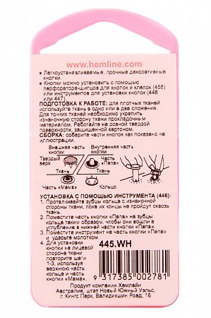 Фурнитура Hemline "Кнопки для легкой одежды (рубашечные) без глазка" 445.WH