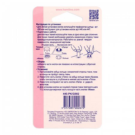 Фурнитура Hemline "Кнопки для легкой одежды (рубашечные) с цветной шляпкой" 440.PK