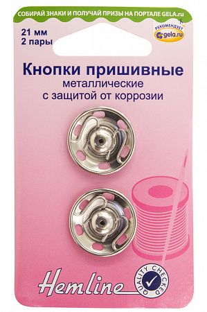Фурнитура Hemline "Кнопки пришивные металлические c защитой от коррозии" 420.21