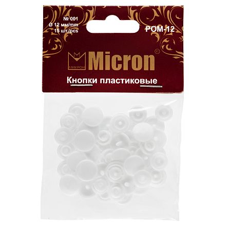 Идеальны для установки на детскую одежду, не вызывают «никелевую» аллергию, возникающую у людей с повышенной чувствительностью кожи при соприкосновении с металлом. Комплект состоит из 4-х деталей: двух лицевых - шляпок со шпеньком и двух внутренних - деталей механизма застегивания/расстегивания кнопки. Застегивание и расстегивание происходит за счет упругости материала самих кнопок. Для установки необходимы Щипцы Micron для пластиковых кнопок арт. POM-10/12/15.